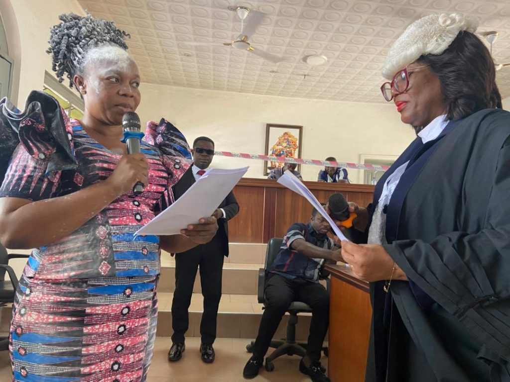 Her honour Rosemarie Afua-Asante, the Juaben circuit court judge, sworn her into office to begin her office duty as the new MCE after the peaceful election, which was conducted by the Electoral Commission and observed by chiefs, security personnel, assembly members, the member of parliament (MP) and some party executives.