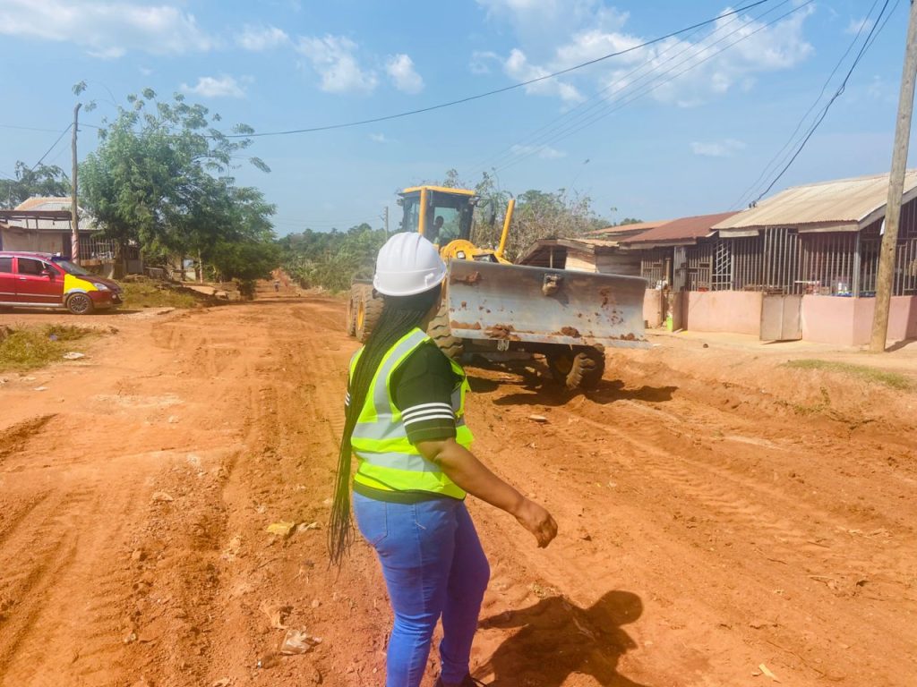 During the inspection, Madam Ansu engaged with operators on site and stressed the importance of proper grading, levelling, and drainage to ensure the durability of the road. She assured residents that the Assembly would continue to monitor the works closely to achieve the desired outcome.